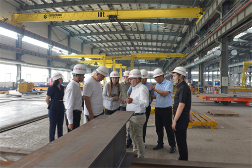 來訪期間,菲祖利先生一行四人先后參觀了昌大建科鋼筋加工、鋼結(jié)構(gòu)以及預(yù)制構(gòu)件車間,第三裝飾幕墻公司門窗加工車間,參觀了集團(tuán)公司企業(yè)展廳、建筑史館。