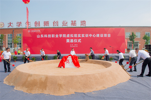 2025年7月17日上午,山東科技職業(yè)學(xué)院虛擬現(xiàn)實實訓(xùn)中心項目奠基儀式在項目現(xiàn)場隆重舉行。學(xué)院黨委書記鄭德前,集團公司總裁朱九洲,山東省工程咨詢院黨組成員、副院長何健,山東建筑大學(xué)設(shè)計集團有限公司董事長、總經(jīng)理李端杰,招商銀行濰坊分行黨委書記、行長潘兆強,學(xué)院黨委委員、紀(jì)委書記秦建坤,學(xué)院黨委委員、副校長徐曉雁、董傳民,學(xué)院副校長張振東出席奠基儀式。